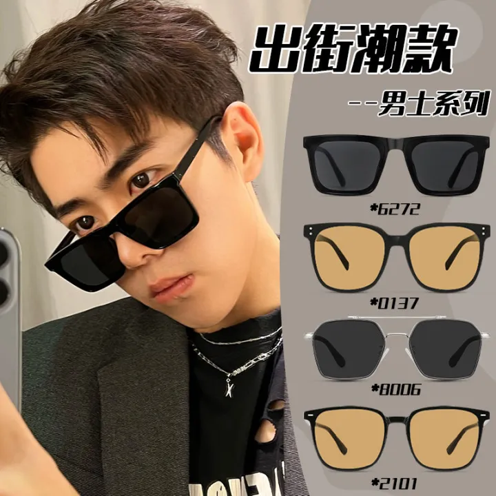 【OnyxOutlet】Sunglasses Men Driving Trendy High-End Large Face Square Internet Celebrity Black Sunglasses UV Protection Strong