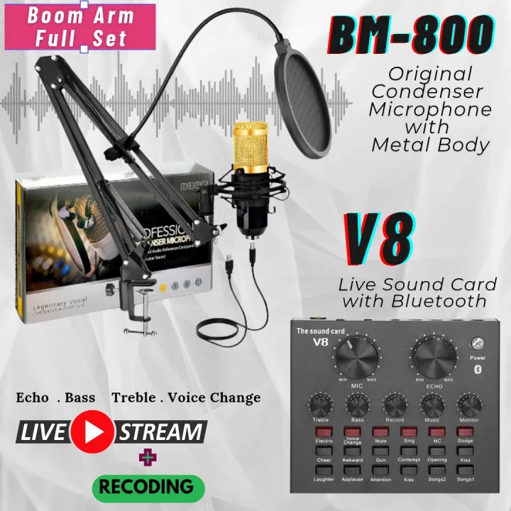 OriginaI BM800 High Quality Condenser Microphone with Live Sound Card - Full Set
