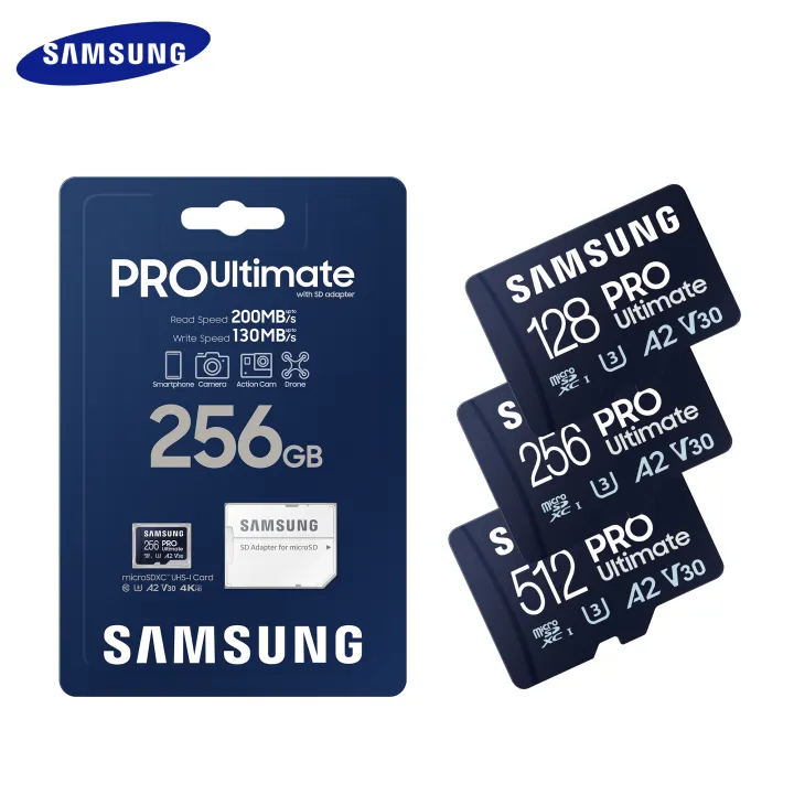 Original Samsung 128GB 256GB PRO Ultimate Memory Card 512GB V30 A2 U3 High Speed UHS-I 64GB V10 A1 U1 EVO PLUS Micro SD Card