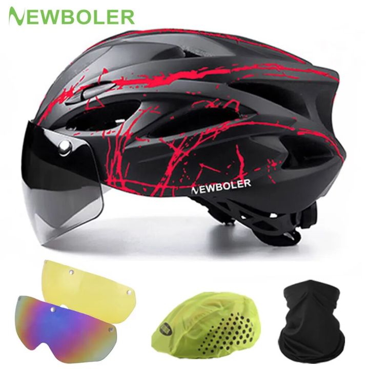 Outdoor Motorcycle Bicycle Helmet Removable Lens Visor Mountain Road Cycling Helmet Newboler Bike Helmet Man Women Safety Helmet