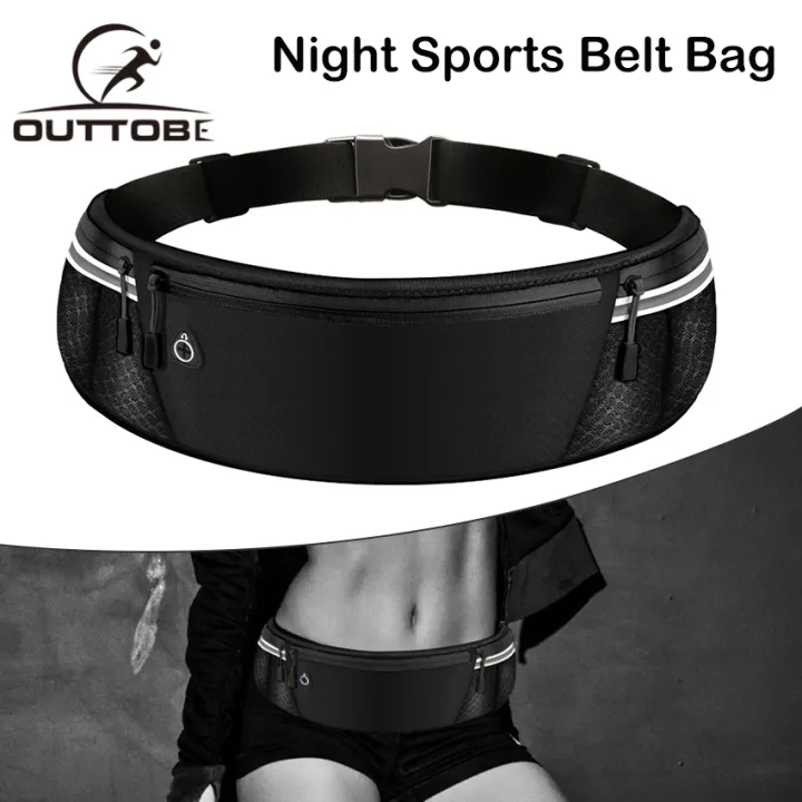Outtobe Sports Running Belt Waist Bag Outdoor Dual Pouch Sweat-proof Reflective Waist Pack Fitness Workout Belt Adjustable Running Pouch Belt with zipper for Jogging Gym Marathon