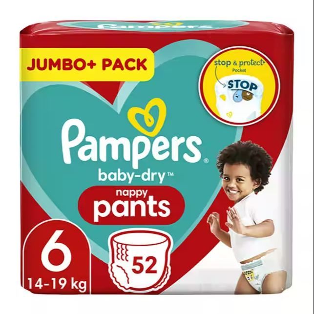 Pampers Baby-Dry Nappy Pants Size 6, 52 Nappies, 15+kg, Jumbo+ Pack