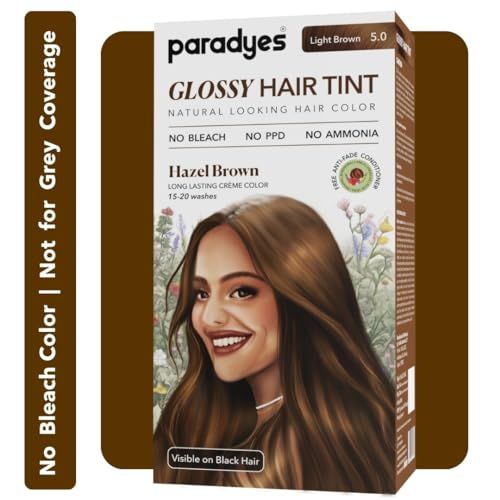 Paradyes No Bleach Hazel Brown Glossy Hair Tint, Ammonia-Free Formula for Natural Black Hair, Visible on Natural Black Hair, Enriched with Herbal Extracts, Includes Anti-Fade Conditioner for Long-Lasting Shine, 5 Light Brown(FROM INDIA)NUSS