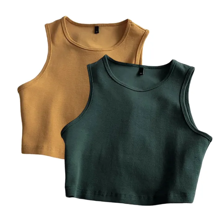 【Parchment & Lace】3pcs Set Summer Women Retro Crop Top High Waist Slimming Stretch Short Sleeveless Bottoming Tops