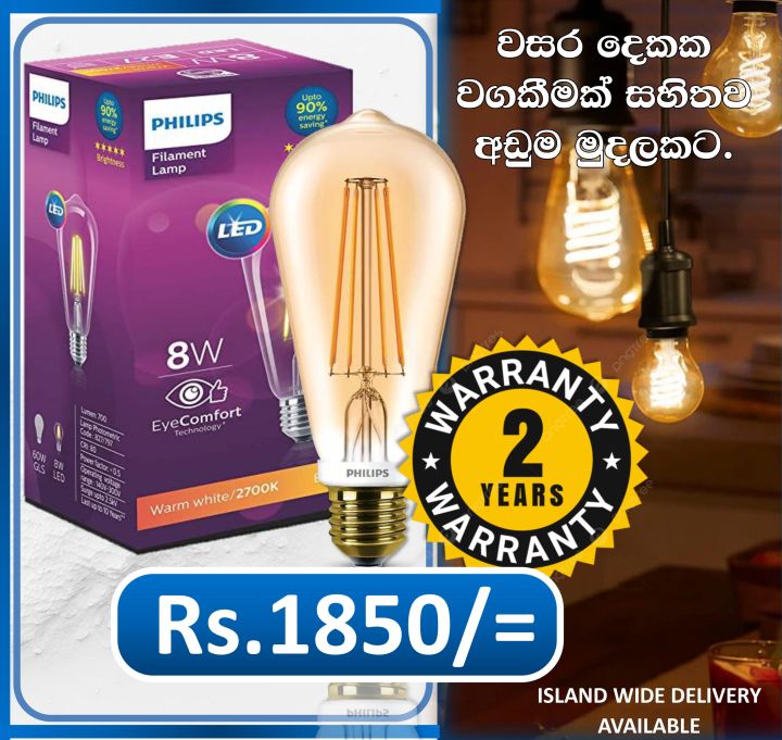 Philips 8w Filament Lamp || Filament Lamp || With 2 years || Philips || Filament LED