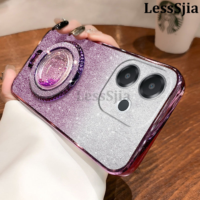 Phone cover OPPO A5 Pro Back case with Liquid Glitter Quicksand hourglass Stand Holder Luxury Shiny Gradient Plating Girls Slim For OPPO A5 Pro 5G Phone cases