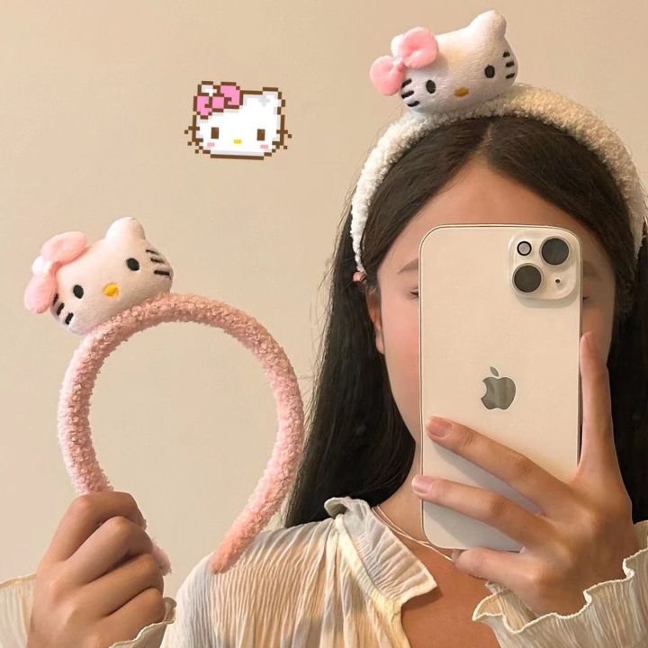 Pink Girl Hello Kitty Headband Cute Princess Style Face Wash Headband Girl Kt Plush Doll Headband