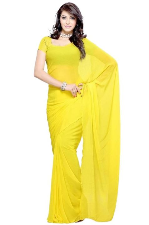 PLAIN YELLOW SOFT GEORGETTE SAREE WITH PLAIN YELLOW BLOUSE PIECE