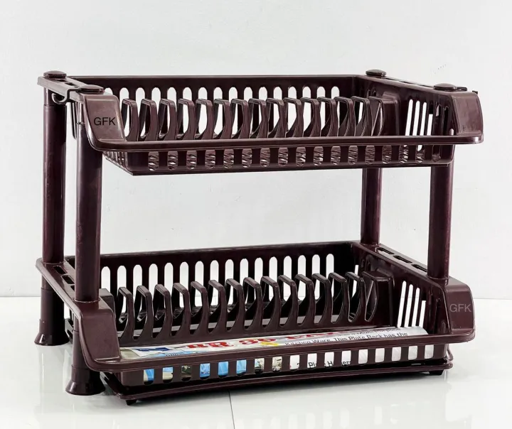 Plate Holder / Dish Rack With Hooks 2 Layers Multi-Purpose Kitchen Organizer - Large