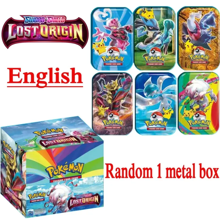pokemon cards golden Anime 48Cards Pokemon Card Iron Metal Box Lost Origin Shining Cards GX Vmax V Battle Game Collection Card Kids Christmas GiftParty Games Crafts