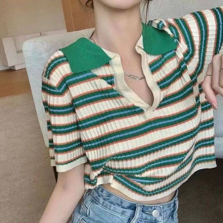 POLO%20Collar%20Striped%20Sweater%20for%20Women%20Spring%20and%20Summer%202024%20New%20Design%20Sense%20Slim%20Fit%20Slimming%20and%20Short%20Hot%20Girl%20Short%20Sleeve%20Top%20-%20Image%205
