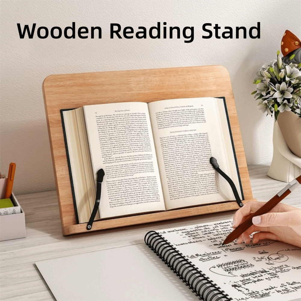 Portable Adjustable Angle Book Holder Tray Foldable Multi-Position Support Wooden Reading Stand 8 Modes with Clip Cookbook Bracket Reading