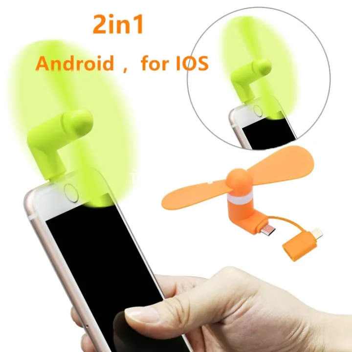 Portable Mini 2 In 1 Mobile Phone Fan, Micro USB Adapter Type IOS Smartphone For Iphone Android Micro Hanldheld Cooling Fan 3in1