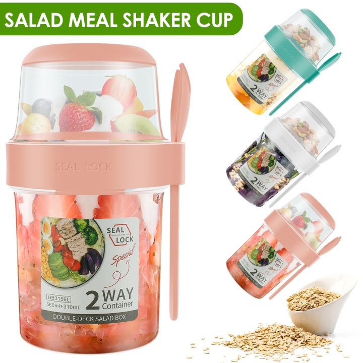 Portable Salad Cup Breakfast Oatmeal Cereal Nut Yogurt Cups Seal Container Set with Fork School Lunch Box Food Storage Bento Box