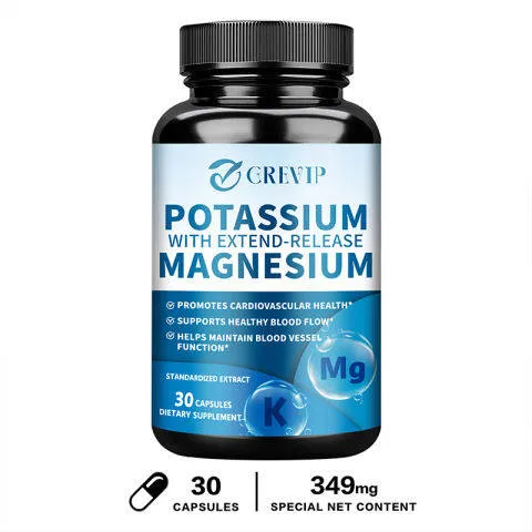 Potassium Magnesium Capsules Supports Nervous & Heart Function Regulate Blood Pressure Muscle Recovery Relax Mood Promote Sleepping, 30 capsules (FROM MALAYSIA)