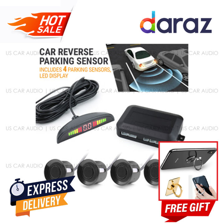 Premium Parking Reverse Sensor Kit with Digital Display and Step-up Alarm (Black Colour Sensors)