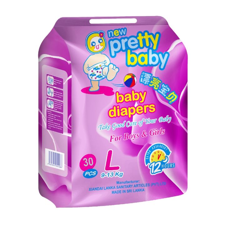 Pretty Baby | Disposable Baby Diapers | Large 30 Pcs | 9-14Kg | Disposable Nappies Diaper | Anti-Leak Super Absorbent Ultra Soft Baby Diaper | Pampers Pempers Pambers Pampurs Pambus Pampus | Comfort |Diapering Kids | L | Best Price Sri Lanka