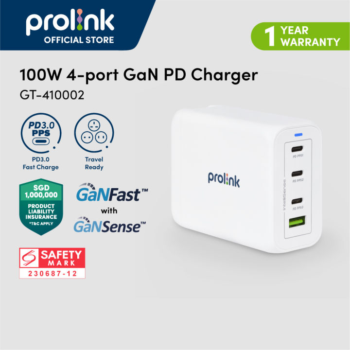 Prolink%20100W%204-Port%20GaN%20PD%20Fast%20Charger%20compatible%20for%20Laptop/Phone/Tablet/Camera%20GT-410002%20-%20Image%201