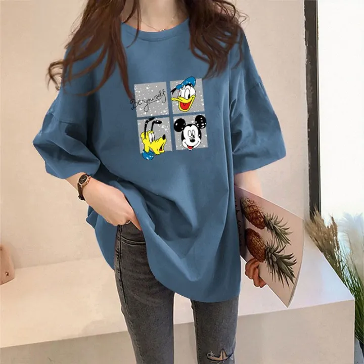 Pure Cotton 2024 Spring and Summer New Korean Style Loose All-Matching Printed T T-shirt Top Casual Short Sleeve Hong Kong Style Women's Fashion