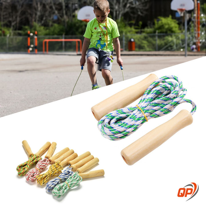 QP Wooden Handle Fitness Braided Cotton Adjustable Skipping Rope