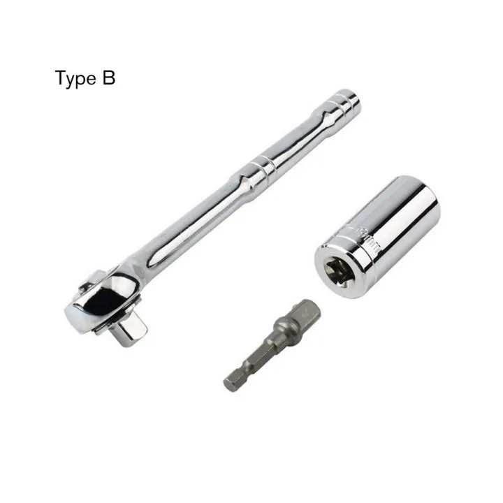 Ratchet Spanner set Socket Sleeve 7-19mm Power Drill Socket Adapter Extension-Silver Type-B