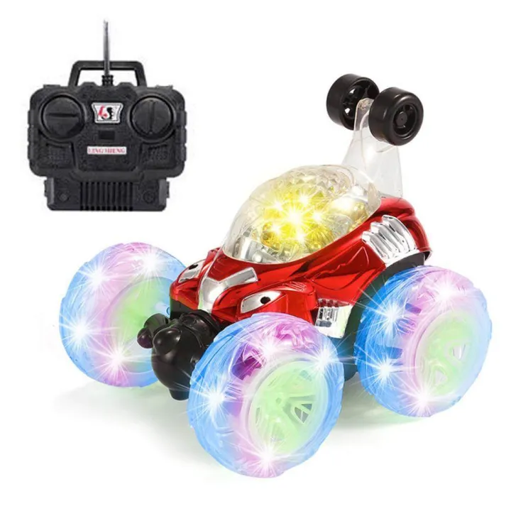 Rechargeable RC Rolling Stunt Car 360 Degree Spinning and Flips with Color Flash Music Remote Control Truck Toy for Kids