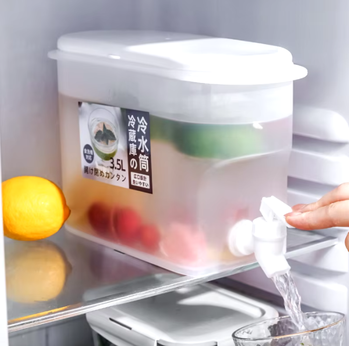 Refrigerator Water Jug with Faucet, 3.5L Drink Dispenser for Cold Beverages, Compact and Transparent for Easy Fridge Storage