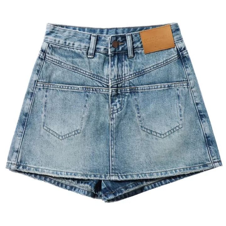 Retro Hot Girl Denim Skirt Women 2024 Summer Thin High Waist Slimming Small a Fashionable Hip-Wrapped Culottes