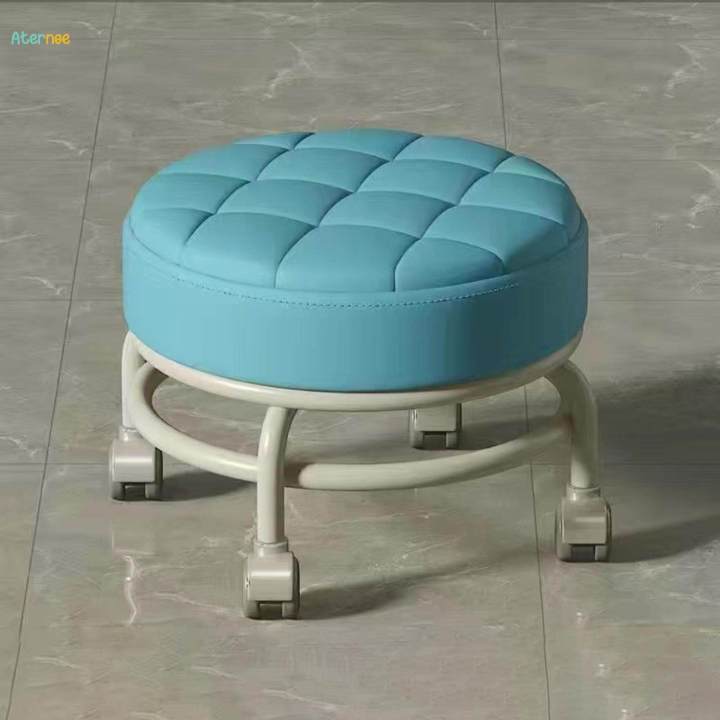 Rolling%20Stools%20with%20Wheels%20360%C2%B0%20Rotating%20Housework%20Stool%20PU%20Leather%20Seat%20Padded%20Shoe%20Changing%20Stool%20-%20Image%201