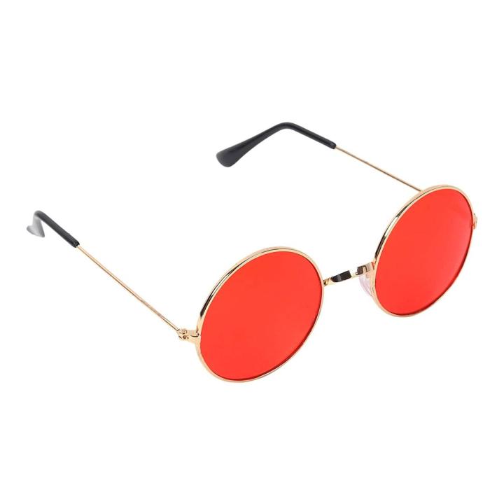 Round Shape Retro Golden-Red UV Protection Sunglasses Shades/Frame For Men & Women (Red Lens)