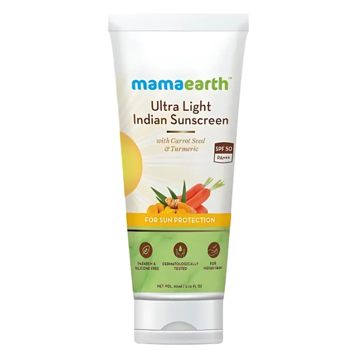 Mamaearth Ultra Light Indian Sunscreen with Carrot Seed, Turmeric and SPF 50 PA+++ - 50g