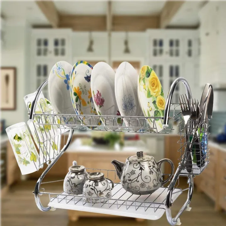 S-shaped 2-Tier Multi-function Stainless Steel Dish Rack