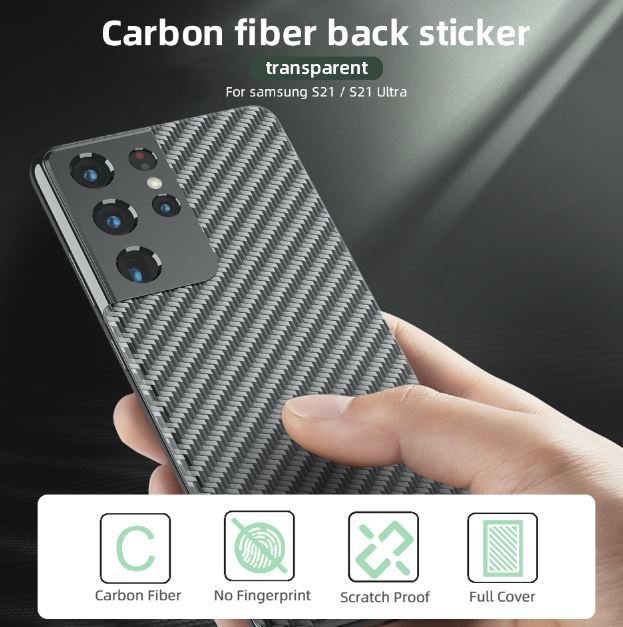S21 Ultra Thin Fit Transparent Carbon Fiber Film Phone Case Wrap Screen Protector 3D Back Skin Ultra Thin Protective Film Anti Scratch Back Sticker For Samsung Galaxy S21