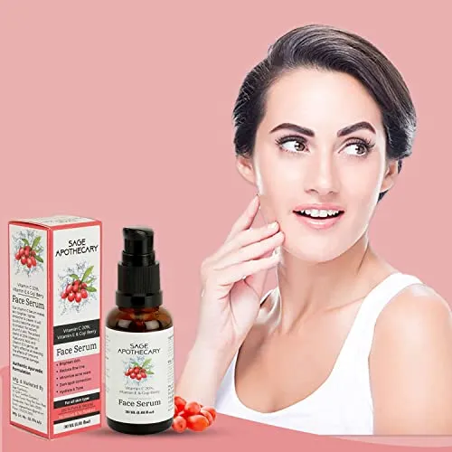 Sage Apothecary Face Serum Natural Vitamin C 20%, Vitamin E & Goji Berry,Increases Skin's Glow Instantly Reduces Spots Overtime Bright Serum Whitening Men for Women 30ML(FROM INDIA)