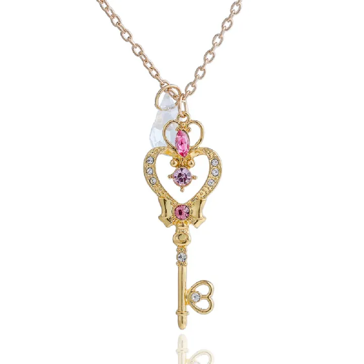 Sailor Pendant Moon Love Crown Magic Key Necklace Sweater Chain for Women Girl Jewelry Gift