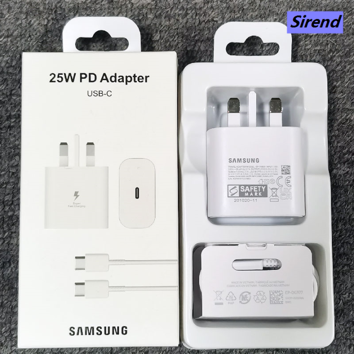 Sirend Samsung 25W Super fast Charger UK Plug PD Super Fast Charging Adapter For Galaxy A55 A35 A25 A15 A54 A73 A53 S20 S21 S22 S23 S24
