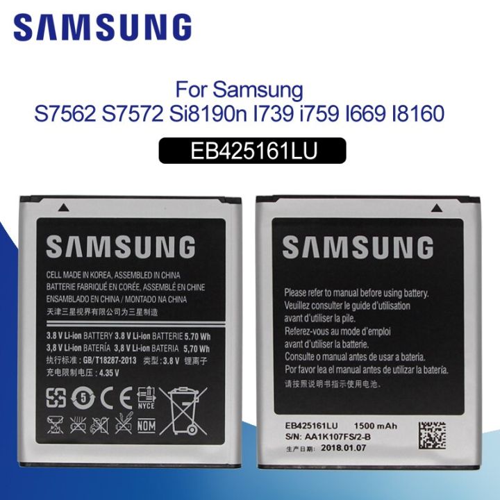 SAMSUNG Battery - EB-425161LU Battery For S7562 S7582 Galaxy S Duos Galaxy S Duos 2 S7566 S7568 i8160 S7560 S7580 i8190 i739 i669 7562 7582 J1 Mini battery