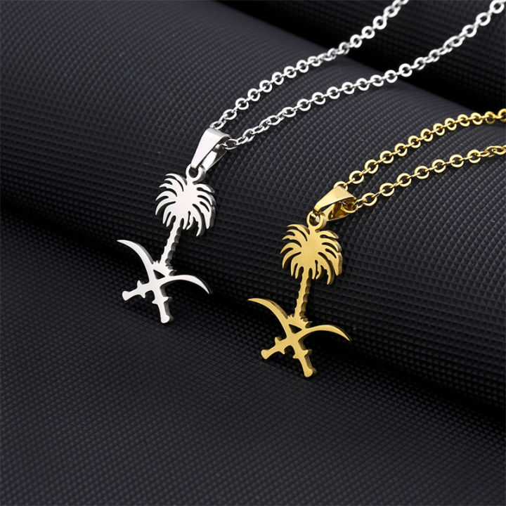 Saudi Arabia National Emblem Symbol Pendant Necklace Kingdom of Saudi Arabia Badge Charm Jewelry Titanium Steel Arab Accessory