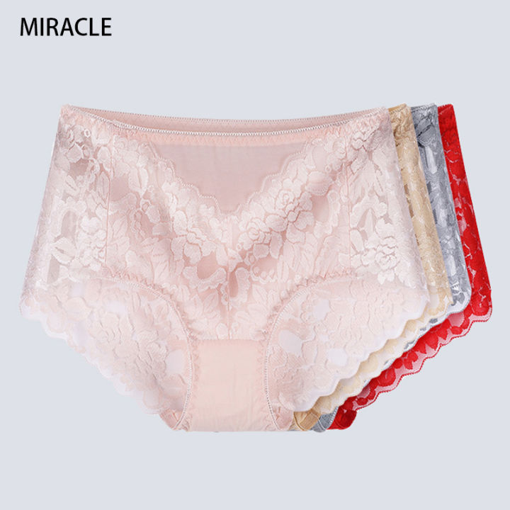 Seamless Panties Women Lace Mid Waist Underwear Female Woman Soft Silk Panti Briefs Big Plus Size XXXL Woman Bragas Panty Femme