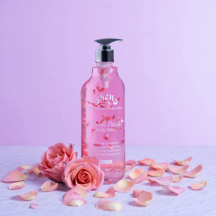 Shello Flower Petals Body Wash 500ml with Free Loofah
