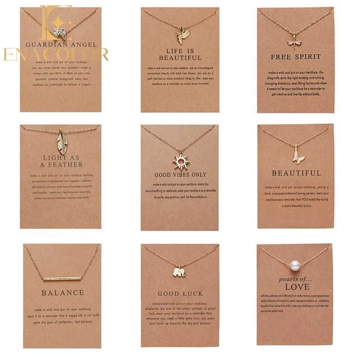 Enacolor Simple New Letter Paper Card Wings Alloy Pendant Necklace for women