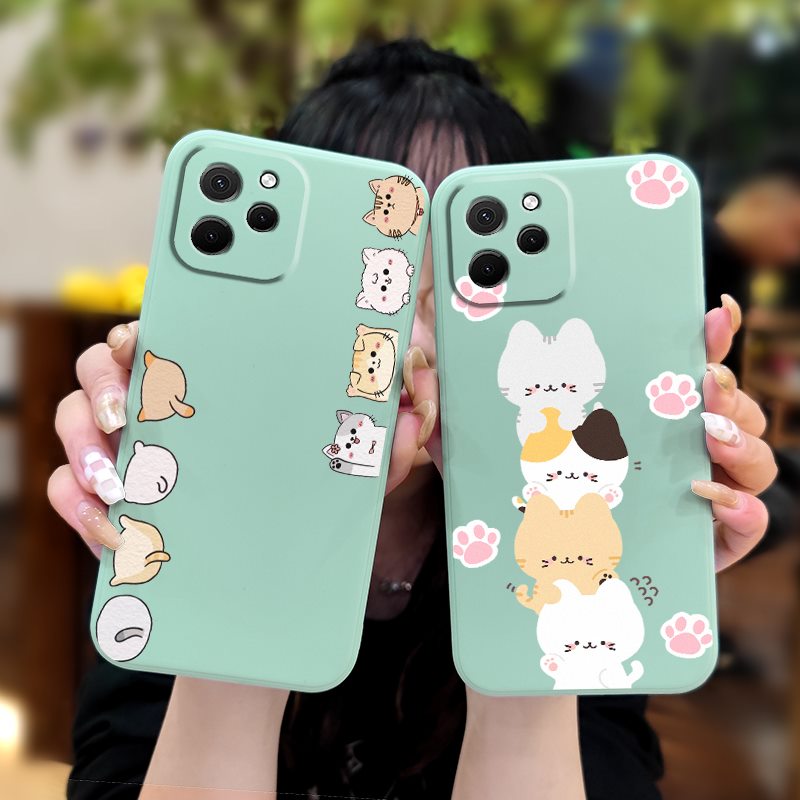 Skin feel silicone soft shell Phone Case For Huawei Nova Y61/Enjoy 50Z Cartoon Simplicity Liquid silicone shell cute cat