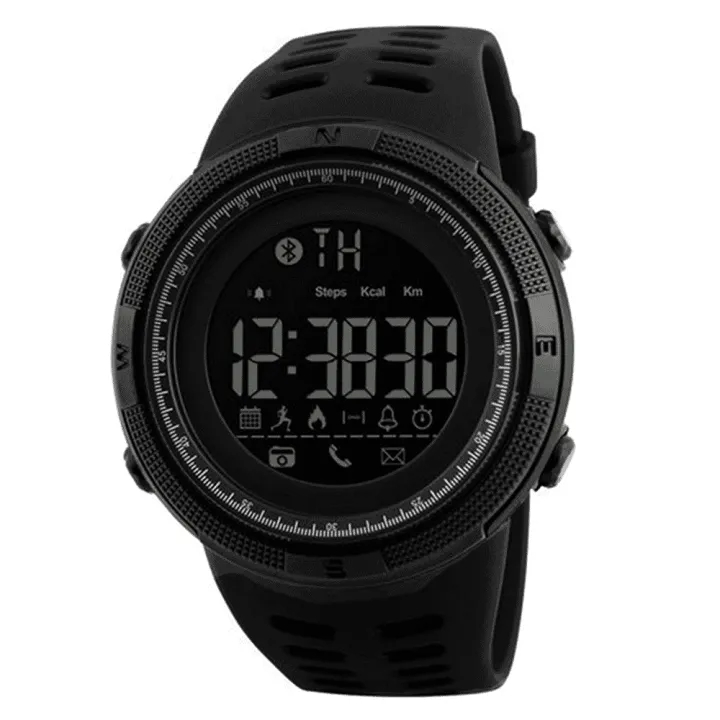 Skmei 1250 Bluetooth Smartwatch Mens Smart Digital Sports Casual Black Strap Watch with Pedometer Call Message Notification Step count Stopwatch Water resistant