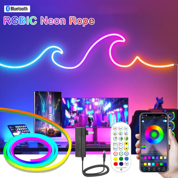 Smart Bluetooth RGBIC Neon Led Strip 5M 10M 12V Waterproof RGB IC Full Color Led Neon light Music Sync Bars Gaming Room Decor