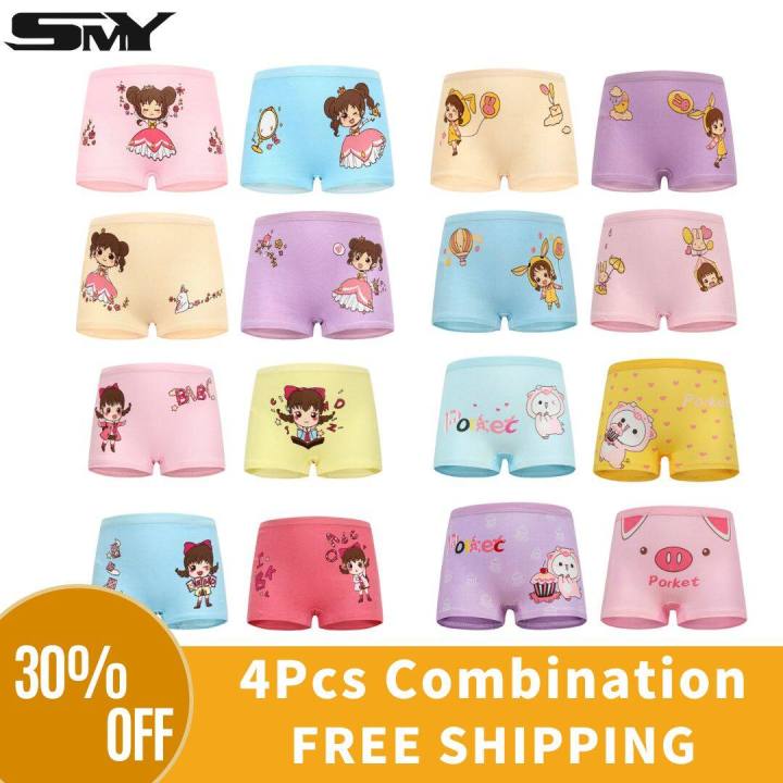 SMY 4 Pcs/Set Clearance Special Soft Cotton Kids Girls Underwear Pretty Petticoat Princess Pattern Girls Panties For 2-12 Years Old
