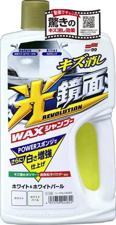 SOFT99 New Scratch Clear 'Mirror Finish' Wash and Wax Shampoo - White & Pearl