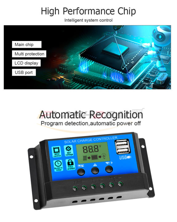 Solar Charge Controller 30A 12V/24V Adjustable LCD Display Solar Panel B-attery Regulator With USB Port Auto PWM Controllers Intelligent System Charging Controller For Home