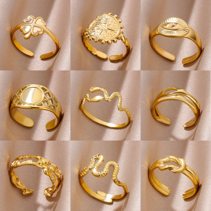 %E3%80%90Special%20offer%E3%80%91New%20Snake%20Ring%20Plated%2018K%20Gold%20Stainless%20Steel%20Oil%20Pressure%20Four-leaf%20Clover%20Ring%20Female%20Devil's%20Eye%20Ring%20-%20Image%201