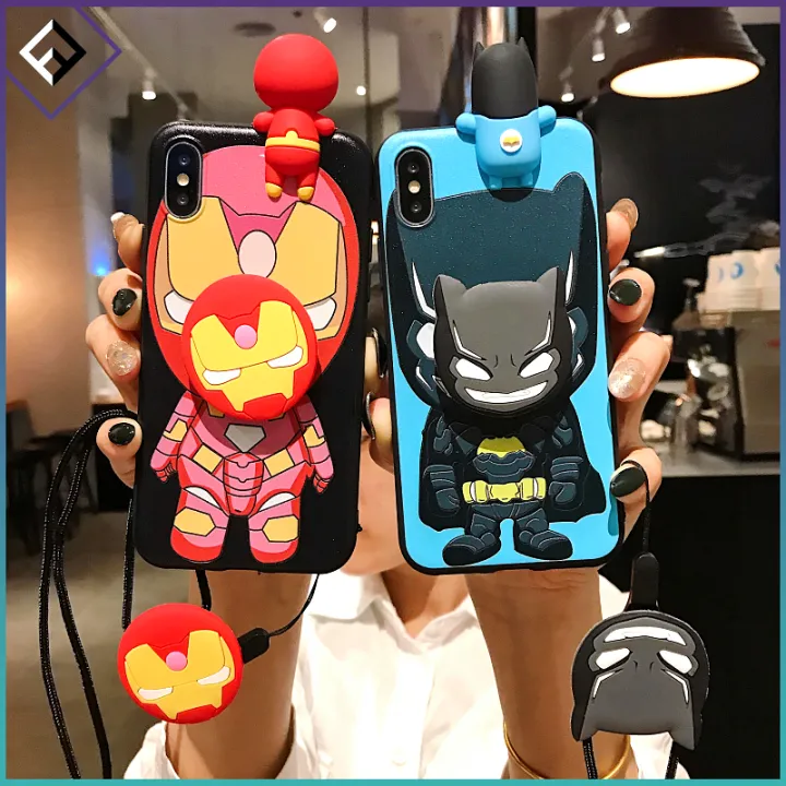 Spider Man Casing Samsung Galaxy J6 Prime J7 2015 J7 2016 J7 Core Cartoon Batman Phone Case Samsung Galaxy J7 Max J7 Plus J7 Prime J7 Pro J8 Iron Man Captain Marvel The Avenger Superhero Silicone Cover with Bracket Holder Lanyard