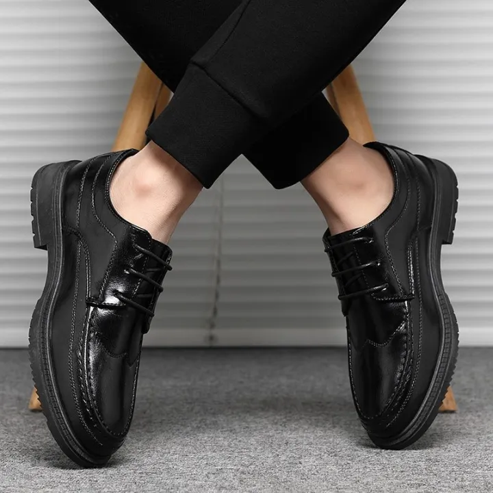 Spring and Autumn Men's Shoes Elevator Wild Business Leather Shoes Korean Style Trendy Non-Slip All-Match Best Man Shoes Casual Black Shoes Work